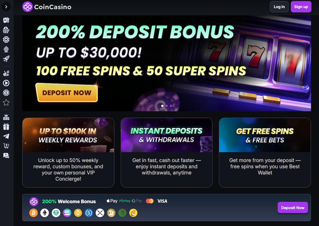 | Coin Casino | 9.8/10 | Instant crypto payouts | 200% up to $30,000 |